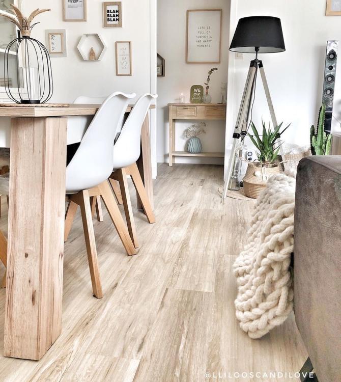 She called on Gerflor's services because she wanted to redo the floor in her 55m² living room. Having fallen in love with the Senso Premium Clic collection, she opted for the Authentic Blond wood effect planks to install herself.